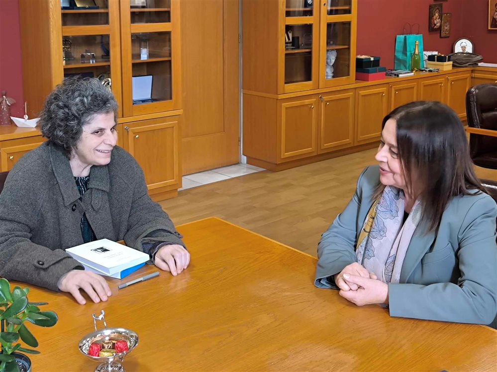 η κόρη του μεγάλου Μίκη στη δήμαρχο Καλαμαριάς, που την υποδέχθηκε θερμά, επισημαίνοντάς της πόσο τιμητική είναι η επίσκεψή της.