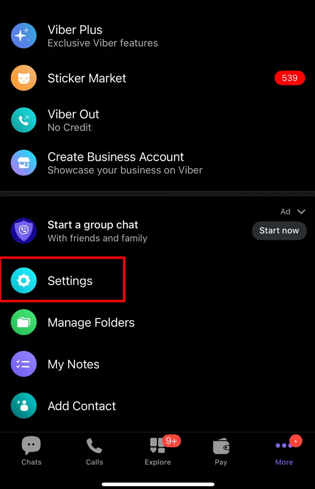 Ανοίξτε το Viber και πατήστε κάτω δεξιά στην επιλογή “More” με τις τρεις οριζόντιες τελείες.