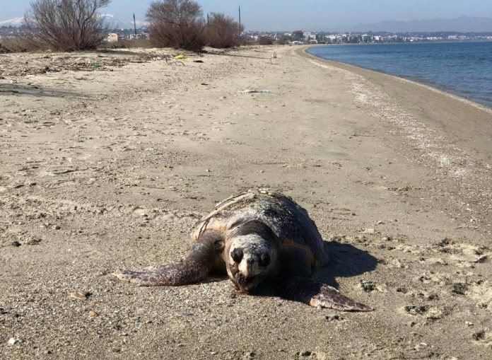 Νεκρή θαλάσσια χελώνα στην παραλία της Περαίας (φωτο)